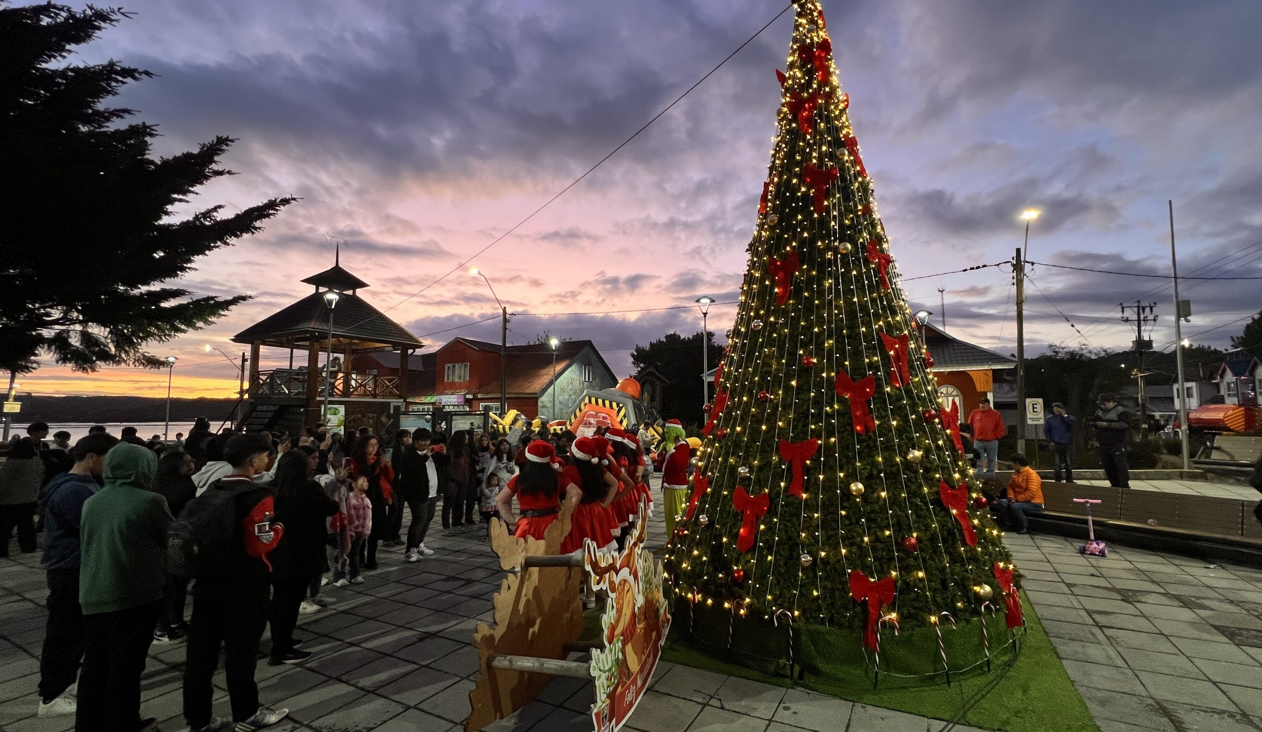 El hermoso árbol de navidad , situado en la Plaza de Quemchi, se encendió alrededor de las 21:40 horas, decorado detalladamente por los duendes municipales, que trabajaron con esmero para que tuviésemos una postal soñada llena de colores y luces para esta navidad 2023.